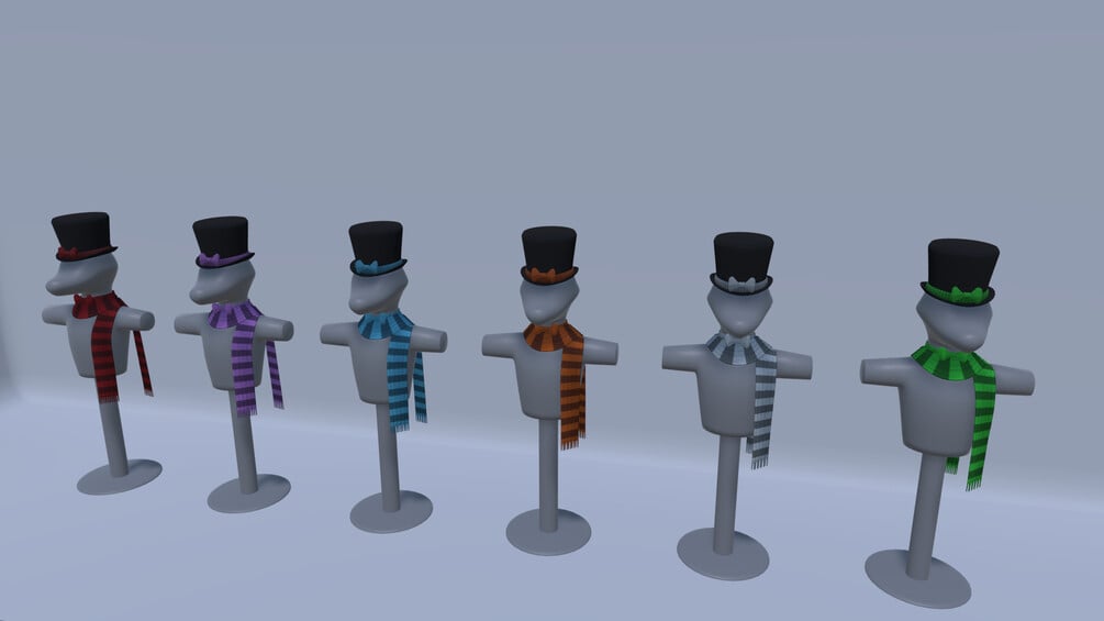 - You may need to rotate bones on the slack of the scarf to avoid minor clipping issues based on your avatar setup