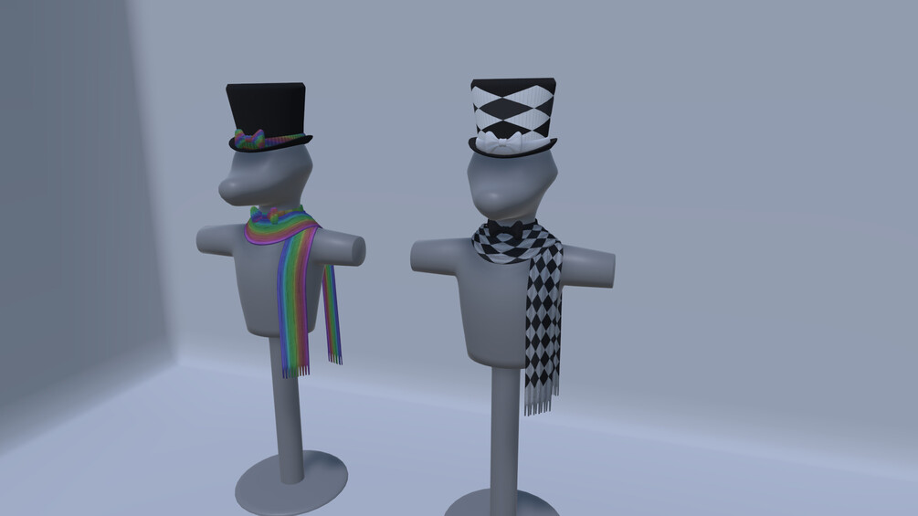 - Regarding the Scarf - The universal rig in combination with its provided blendshapes may not be enough to avoid all clipping issues with some avatars - It is meant to be used in extreme cases where the other two provided rig setups will not work.